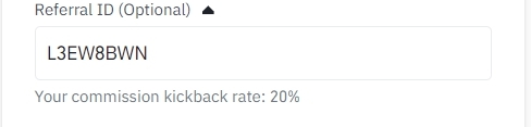 After you have entered the ID or clicked on the referral link, you will see a signature under the referral ID or above the registration window. That signature says what you are getting a 20% discount.